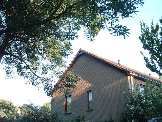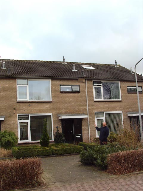 Vlakbij is een kolonie (een blok van 4 huizen) die in spleten onder de dakrand hun nesten heeft. In een poging te kijken of deze vogels ook andere nestgelegenheid accepteren, is in 2009 deze nestkast onder de dakrand opgehangen. Bij het afspelen van de lokgeluiden, bleek dat er aan de overkant van de straat gierzwaluwen onder de kantpannen zitten en dat er verderop in de straat op flauw-hellende daken (30 graden) op de eerste rij van onder vanaf de dakgoot gierzwaluwdakpannen liggen, die ook door gierzwaluwen gebruikt worden. Het is niet bekend of er daar succesvol gebroed is. Maar voor het huis waar nu de nestkast hangt (met een steil dak op het noorden) was een dakpan ook een optie geweest.