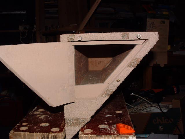 De bodem is horizontaal gemaakt met een plankje dat steunt op twee latjes. Het deurtje aan de zijkant heeft aan de binnenkant een opstaand randje gekregen, zodat als de gierzwaluwen een nestje vastplakken, dit niet aan het deurtje vastgeplakt kan worden.